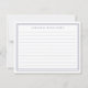 Create your own personalized ruled note cards in blue with monogram name in elegant chic typography and two line border design.