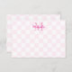 Pink and white squares pattern. Custom note cards with monograM. Edit initial and name to customize.