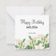Um cartão de aniversário floral elegante apresenta uma incrível lírio branco de cor aquática com tipografia vibrante.