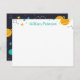 Cartão de nota personalizado com planetas, estrelas, meteoritos e constelações.