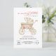 Este convite para o chá de fraldas apresenta uma carruagem de bebês inspirada em vintage, enfeitada com verde festivo e flores vermelhas, criando uma sensação de feriado acolhedora. A frase "um pouco de feliz está a caminho" é escrita num encantador roteiro vermelho no topo, definindo um tom alegre. Perfeito para uma comemoração de dezembro, este design combina calor e sofisticação lindamente