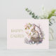 Cartão de saudação de páscoa com ilustração aquosa de um coelho guardando um ninho sob uma árvore magnólia florida florescendo em flores vibrantes cor-de-água, rosa e brancas, todas colocadas sobre um fundo rosado macio. Felz pascoa de script em negrito à esquerda da ilustração em uma fonte verde para corresponder. Uma versão menor da ilustração é repetida na parte inferior direita na parte traseira da placa com espaço para uma nota manuscrita pessoal. Tamanho adicional disponível.