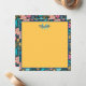 Esta placa de anotação bonitinha apresenta um padrão de flores cor-de-rosa, azuis e ouro amarelas sobre um fundo preto em negrito. Personalize o monograma com sua escolha de nome e inicial.