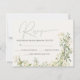 Esta Carta de RSVP de Casamento de Flores Selvagens apresenta flores silvestres brancas, marfim e creme de cor d'água misturadas com uma adorável folhagem verde sobre um fundo clássico de marfim. Confira nossas coleções de Casamento para encontrar os itens perfeitos para tornar seu dia especial ainda mais especial, e impressionar seus convidados com esta bela design.