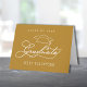 Cartões de nota dobrados Dourados apresentam seu nome, ano de aula, um chapéu de graduação e a palavra Graduação em branco na frente e muito espaço na dentro para escrever uma mensagem manuscrita. CORRESPONDENTE a itens e mais cores na nossa coleção.