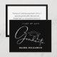 Preto plano, com dois lados, obrigado cartões de nota apresentam seu nome, ano de aula, um chapéu de graduação sobre a palavra Graduação em branco na frente e muito espaço no verso para escrever uma mensagem manuscrita ou compor uma mensagem a ser impressa. CORRESPONDENTE a itens e mais cores na nossa coleção.