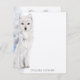 Um animal elegante temia uma placa moderna com uma raposa ártica pintada a aquarela com olhos fixos contra um fundo minimalista branco estrelado. O verso destes cartões de nota apresenta o animal impresso em grande tamanho.