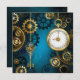 Turquesa, texturizada, fundo steampunk com latão e engrenagens douradas, uma chave prateada e o relógio. Estilo Steampunk.