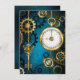 Turquesa, texturizada, fundo steampunk com latão e engrenagens douradas, chave prateada e relógio. Estilo Steampunk.