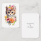 Cartão De Notas Gato de Aquarela Cuta com Flores