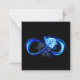 Luminous infinity symbol with glowing, beautiful, lushly blooming rose made of blue flames on black background.