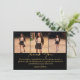 Celebrate your milestone with this elegant black and gold graduation thank-you card. Featuring a modern 3-photo collage and sophisticated gold script calligraphy, this card allows you to share your favorite graduation memories with friends and family.