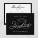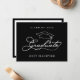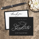 Cartões de agradecimento pretos, planos e frente e verso apresentam seu nome, ano de formatura, um boné de graduação e a palavra Graduate em letras brancas elegantes na frente. Há muito espaço no verso para escrever uma mensagem manuscrita ou compor uma mensagem para ser impressa. ITENS COINCIDENTES e mais cores em nossa coleção.