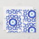 Um padrão abstrato do símbolo grego de boa sorte do olho. Este símbolo também está ligado a muitas outras culturas e tradições. Os diferentes tons azuis contrastam com o fundo branco que cria um sentimento de verão na ilha grega. Presente perfeito para quem ama ilustrações místicas de abstrato. Ideal para um presente de aniversário, decoração infantil, arte infantil de quarto, decoração doméstica, presente de Natal ou presente para qualquer outra ocasião especial.