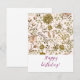 Happy birthday! Modern monochrome beige floral designe whit bird, watercolor