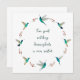 Cartão de nota para amantes de beija-flores que apresentam uma coroa de beija-flores da América do Norte, como os beija-flores violetas, beija-flores grossas e beija-flores rugas, e a citação "O tempo passado assistindo beija-flores nunca é desperdiçado." Todas as imagens de aves e citações de C. Dobbins.