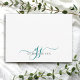 Cartão De Notas Iniciais de Script Teal de Monograma Chic