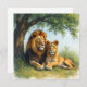 Cartão De Notas Leão e leão sob Vazio de árvore