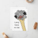 This greeting card features a hand-drawn doodle ostrich emerging from a loose cloud of simple circles. The playful illustration pairs naturally with the message “Long time no see”, turning a familiar phrase into a warm and light-hearted greeting.