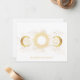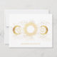 Um estilo celeste de cartão de nota etérea, com uma mandala de ouro moderna, com raios solares, e fases da lua, com uma assinatura bonito e moderna. Faux gold foil efeito.