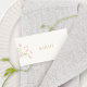 Cartões mínimos de chic e na moda com nomes personalizados e detalhes florais caprichosos. Essas placas são DIY e precisam ser cortadas ao longo das linhas finas na parte traseira para produzir 10 placas no total. O design apresenta um conjunto contemporâneo de fontes em ouro falso, contra fundo de marfim chico. Este item faz parte do pacote de casamento que inclui outros itens, como convites, cartões RSVP e muito mais.