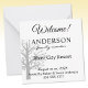 This black on white welcome gift bag mini card is 2.25-inches with empty space on back for a handwritten note. Easily customize this card using the Design Tool template provided. You'll have the option to edit font color, size, style-- and more. Choice of rounded corner style card, other sizes and paper types. Made and Printed in the USA.