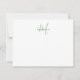 Cartão de Nota de Monograma de Script Verde Branco Moderno Elegante. Um monograma elegante de script verde combinado com uma fonte limpa de san-serif preta faz uma aparência contemporânea. Borda fina no verso do cartão de nota.