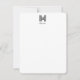 Cartão De Notas Monograma Moderno Simples Preto e Branco