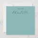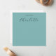 Este cartão de nota apresenta seu nome em um roteiro escrito à mão, chamada de "nota de" em um fundo azul empoeirado. A parte traseira da placa é branca.