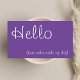Elevem sua gratidão com nossa Trendy Na moda Hello Purple & White Discount Obrigado Note Card, projetada para deixar uma impressão duradoura. Esta placa apresenta um design moderno e elegante, com um esquema de cor roxo e branco nítido, perfeitamente adequado para expressar apreciação de uma forma moderna.