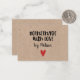 Um cartão de nota personalizado "feito à mão com amor" em um fundo de cor kraft. Torne-o seu adicionando seu próprio nome. Um toque final bonito para todos os seus presentes caseiros. O verso é em branco para escrever um bilhete. Ótimo para pequenos negócios. Desenhado para você por Blackberry Boulevard.