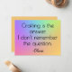 Citação humorística de artesanato e hobby em uma fonte estilosa e nome do script em um fundo gradiente arco-íris brilhante são apresentados neste cartão de nota reto de 4,25 "x5,5". A parte de trás é um dourado sólido correspondente para uma nota pessoal. Ideal para enviar os melhores votos para qualquer ocasião para o trabalho ou familiares e amigos. Edite facilmente "Artesanato" para outra palavra para mudar o tema ou edite todo o texto para torná-lo seu, usando o modelo fornecido. Mais estilos, tamanhos e tipos de papel oferecidos. Feito e Impresso nos EUA.