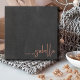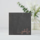 Esta placa de anotações em chic apresenta seu nome em uma caligrafia de caramelo escrita à mão chamada "uma nota de" em um fundo de efeito de quadro negro de cinzas em aflição. Por um efeito moderno terrível. A tipografia é posicionada no canto inferior direito. A parte de trás da placa é branca.
