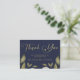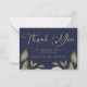 Chá de panela de barato azul e ouro, estilo clássico de vintage moderno, escuro, meia-noite, azul e marinho de orçamento de ouro, obrigado a anotar cartão com um roteiro de caligrafia com um pequeno coração e uma folhagem verde botânica verde-escura esmaecida. ++++++++++ Personalize-o com o seu texto e nome! +++++++++ Observe que a cor de fundo pode ser alterada para corresponder ao seu esquema de cor de casamento. Se for confortável, você pode alterá-lo depois de selecionar a opção PERSONALIZAR TI. ++++++++ Se precisar de ajuda, envie uma mensagem ao designer ou acesse o serviço Free Live Designer do Zazzle.