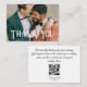 obrigado elegante, sua foto de casamento com o código qr, tipografia branca Nota Cartão com dois lados, no obrigado traseiro você envia uma mensagem com o código qr para ver fotos de casamento.