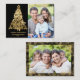 Este cartão de Natal com orçamento de na moda apresenta 2 das suas fotos favoritas e imagem de texto "Joy Peace Holly & Jolly Feliz & Bright" em folha de ouro. A parte traseira apresenta fotos de segundo douradas com flocos de neve em fundo preto. É fácil personalizar.