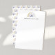 Cadernetas de notas de papelaria de arco-íris personalizadas elegantes e fofas, perfeitas para chás de bebê, festas de aniversário e uso diário! Personalize a papelaria colorida do arco-íris adicionando seu nome ou texto personalizado. Os cartões de notas se invertem para apresentar um padrão de arco-íris em aquarela em tons de dourado, marrom e azul.
