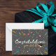 Comemore as conquistas de seus entes queridos com este cartão de nota de graduação na moda e minimalista. Com um fundo escuro elegante, enfeitado com confete e correias coloridas, esta placa é perfeita para qualquer formando. A ousada inscrição branca e dourada, juntamente com uma charmosa ilustração de boné de formatura, acrescenta um toque de sofisticação e alegria. Além disso, você pode personalizar o plano de fundo para uma cor de sua escolha, fazer-o como uma marca de seleção verdadeiramente única. Quer seja para um segundo grau, faculdade, ou qualquer outra formatura, este cartão de nota certamente fará seu dia extra especial.