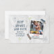 Cartão de Dia de os pais bonito para todos os estaduais e pais de bônus que adotaram seus filhos ou são estaduais. Ele é moderno com um efeito de fundo de papel raspado na frente com rabiscos e fitas lavadas segurando o quadro fotográfico. Personalize este cartão com uma fotografia e os nomes clicando no botão "Personalizar" acima
