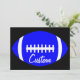 Personalizado Nome da Equipe de futebol Cartão Plano Azul de Futebol / Cartão de Convite: Um design de futebol azul simples, bonito, com uma caixa de texto personalizada onde você pode digitar qualquer texto que quiser - nome da equipe de futebol, mascote, nome da escola, slogan, etc. Trabalha no excelente como convite para festas de futebol, banquetes, campos, seminários de treino e outros eventos especiais, especialmente para equipes com cores azuis! Você também pode optar por excluir o texto do marcador de posição "Personalizado" e deixar o vazio da caixa de texto, ou clicar no botão [Personalizar] para alterar a cor de fundo (atualmente definida em preto) ou ajustar o estilo, o tamanho ou a cor da fonte!