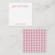 Personalized stationery enclosure notecard with a pink gingham pattern in notes of dark deep and vibrant rose pink bubble gum and white with the sentimental words "get well soon". Tuck it into a flower bouquet or meaningful gift. These minimal flower shop inspired enclosure cards bring a retro kitchen vibe to your most thoughtful moments.