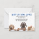 Um cartão de nota de promocional para o seu negócio. Os cachorros e gatos bonitos são perfeitos para representar uma babá, um marinheiro de estimação, um andarilho de cachorro, um treinador de cães ou serviços veterinários. O texto e as cores podem ser alterados. Adicione seus detalhes e solicite estas placas de anotação exclusivas para seu trabalho de hustle lateral!