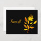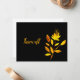um cartão decorativo de despedida em ouro e cores pretas, com uma flor ouro em cores chamas ou semelhantes a chamas.