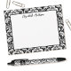 Cartão De Notas Placa de Nota de Damasco Branco Preto Elegante