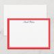 A Placa de Nota Personalizada é mostrada em branco com uma borda vermelha e uma borda interna em branco. Mostrado no papel branco mate assinado. Envelopes incluídos Personalize esta placa e mude o nome do exemplo para o seu.
