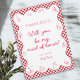 Elevem sua proposta de madrinha de casamento com nosso cartão chic italiano, perfeito para a noiva moderna com amor por todas as coisas italianas. Esta carta elegantemente desenhada apresenta ilustrações vermelhas deliciosas de símbolos italianos icônicos como pizza, massa e gelato, moldada por uma fronteira clássica vermelha e branca, marcada. O elegante roteiro diz, "Você será minha dama de honra?" seguido pelo carinhoso assino, "Con amore." Este cartão acrescenta um toque de sofisticação e brincadeira ao seu momento especial, fazer-o como algo incontornável para as noivas que planeiam um casamento com temas italianos ou que simplesmente querem incorporar talento italiano. Diga "Isso é Amore" com estilo e charme, e torne sua proposta de madrinha realmente inesquecível.