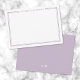 Add a personal touch to your stationery with this clean and modern note card. The front features a white background with a classic double border in a soft lilac lavender purple and has space to display your full name in a timeless serif font. The design is simple yet polished, offering a versatile look that works for any occasion. On the back, a white initial monogram adds a subtle detail against the solid light purple background for a gentle, elegant contrast.