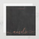 Este cartão de nota único e moderno "uma nota de", apresenta seu primeiro nome em uma caligrafia de script manuscrito de cobre em um fundo de quadro, com seu sobrenome em uma tipografia moderna sans serif aninhada em seu tipo de script.