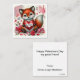 Raposa incrível envia amor e diversão para novas amizades na sala de aula neste Dia dos Namorados. Esta adorável raposa vermelha com bochechas rosadas e patas pretas senta segurando um coração cintilante vermelho com "SEJA MEU" em preto em uma placa branca. Rosas vermelhas e rosadas e pétalas de rosa jazem aos seus pés. Um swash de aquarela vermelho, cinza e prata com gotas e respingos ao fundo.