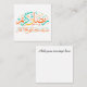 Cartão de saudação personalizável de Ramadan Mubarak com uma caligrafia árabe colorida.